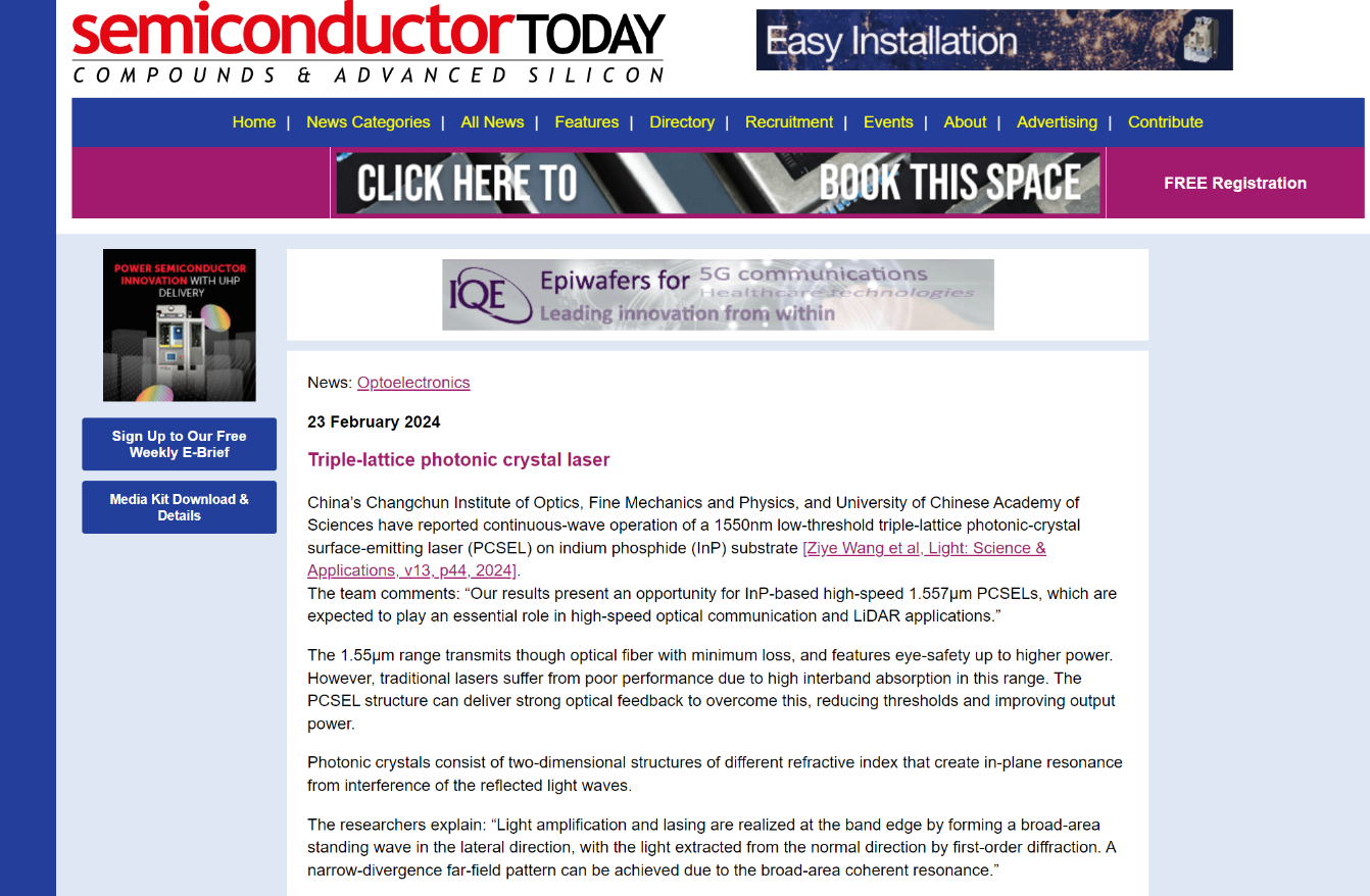 GC Light杭州吉熙半导体科技有限公司PCSEL 是新一代高性能半导体激光器技术,基于纳米尺度光子晶体结构,可实现近乎理想的垂直出光和超低发散角输出,同时保持稳定的单横模、单纵模工作特性,为高亮度、高相干性和高一致性的激光应用提供全新解决方案。了解更多